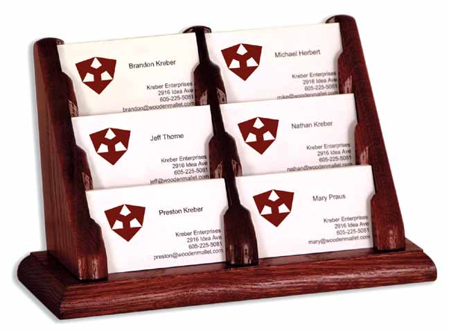 Solid Oak, High-End, 6 Pocket Business Card Holder is ideal for use in law firms, banks, medical offices, dental offices, real estate offices, or any other office setting where an upscale impresssion is desirable. Additionally... all components on our Business Card Holders are pre-finished before assembly to ensure an even finish in all nooks and crannies.