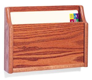 15”W 11”H 4-1/2”D - Single 13-1/2” wide x 3-1/2” deep pocket I 6 lbs. I Wall Mount hardware included Choose from: Light Oak, Medium Oak, Dark Red Mahogany